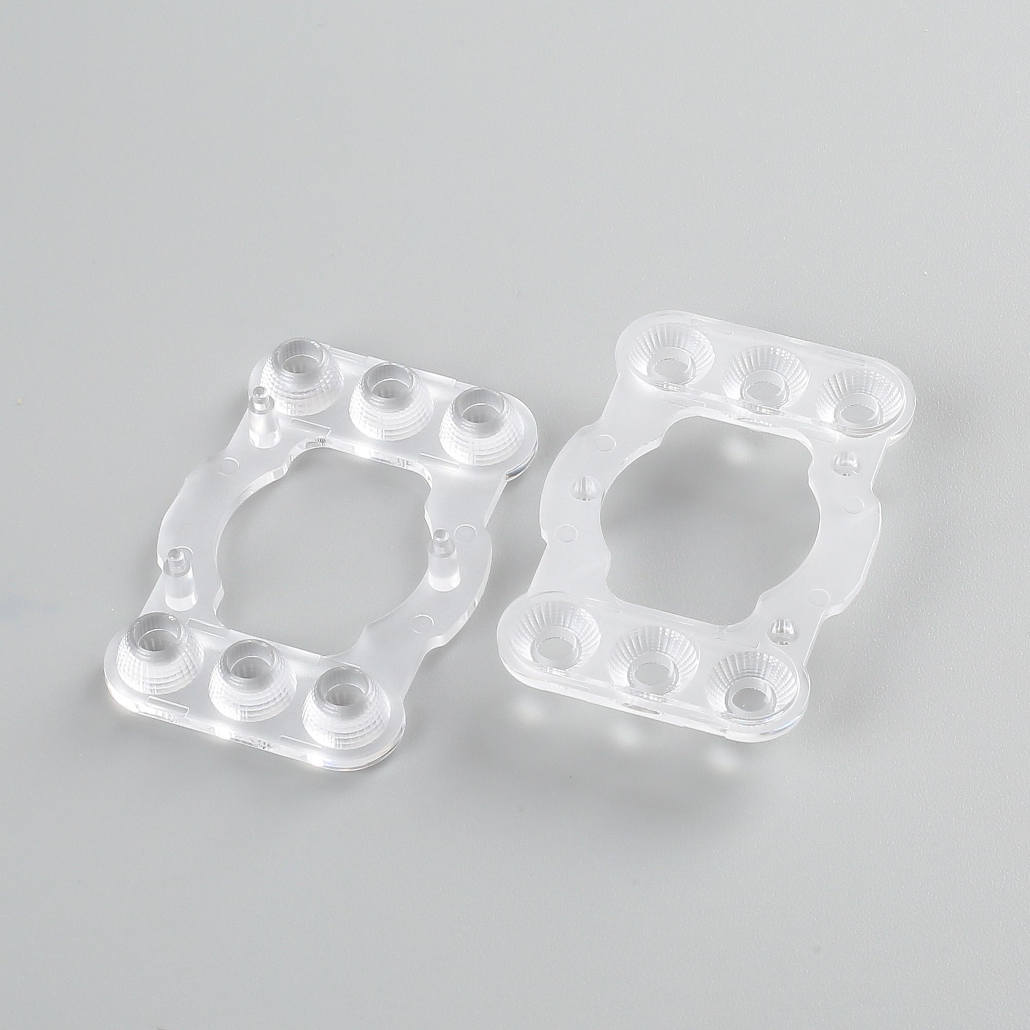 1.产品描述:出光区为磷面,光斑均匀, 非出光区为砂面,底部有4根柱子用于固定在灯板上;